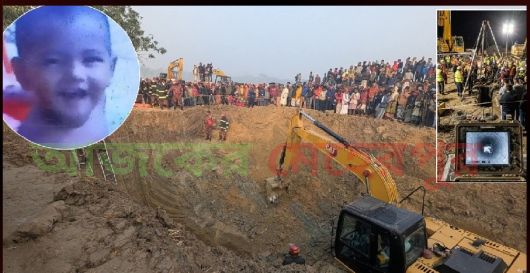 বুধবার দুপুরে উপজেলার পাঁচন্দর ইউনিয়নের কোয়েলহাট গ্রামে মর্মান্তিক দুর্ঘটনা ঘটে। শিশু সাজিদ তার মা ও ভাইয়ের সঙ্গে বাড়ির পাশের একটি জমি পার হচ্ছিল। জমিটি খড় দিয়ে ঢাকা ছিল। সাজিদের মা জানতেন না যে খড়ের নিচেই রয়েছে একটি অরক্ষিত গভীর নলকূপের গর্ত। হাঁটার সময় হঠাৎ সাজিদ গর্তে পড়ে যায়। পেছন থেকে ‘মা মা’ চিৎকার শুনে মা ফিরে দেখেন সাজিদ নেই। খড় সরাতেই বেরিয়ে আসে মৃত্যুকূপ। স্থানীয়রা জানান, গত বছর স্থানীয় এক ব্যক্তি এখানে গভীর নলকূপ স্থাপনের চেষ্টা করেন। কিন্তু ১২০ ফুট নিচেও পানি না পাওয়ায় পাইপটি পরিত্যক্ত অবস্থায় মুখ খোলা রেখেই ফেলে রাখা হয়। গত বছরের বৃষ্টিতে গর্তটির মুখ আরও বড় হয়। কোনো সতর্কতামূলক ব্যবস্থা বা ঢাকনা না থাকায় এই দুর্ঘটনা ঘটেছে বলে স্থানীয়দের অভিযোগ। ঘটনাস্থলে ভিড় করেন হাজারো উৎসুক জনতা। গর্তের পাশেই নির্ঘুম রাত কাটান সাজিদের মা। সন্তানকে ফিরে পাওয়ার আশায় চলে বিরামহীন কান্না ও দোয়া। দুর্ঘটনার পরপর শিশুটির সাড়াশব্দ পাওয়া গেলেও সময় বাড়ার সঙ্গে সঙ্গে ভেতর থেকে আওয়াজ আসা বন্ধ হয়ে যায়; যা উদ্ধারকর্মীদের শঙ্কিত করে তোলে। তবে গর্তের ভেতরে অক্সিজেন সরবরাহ অব্যাহত রাখে ফায়ার সার্ভিস। মেডিকেল টিম ও স্থানীয় প্রশাসন ঘটনাস্থলে উপস্থিত ছিলো।