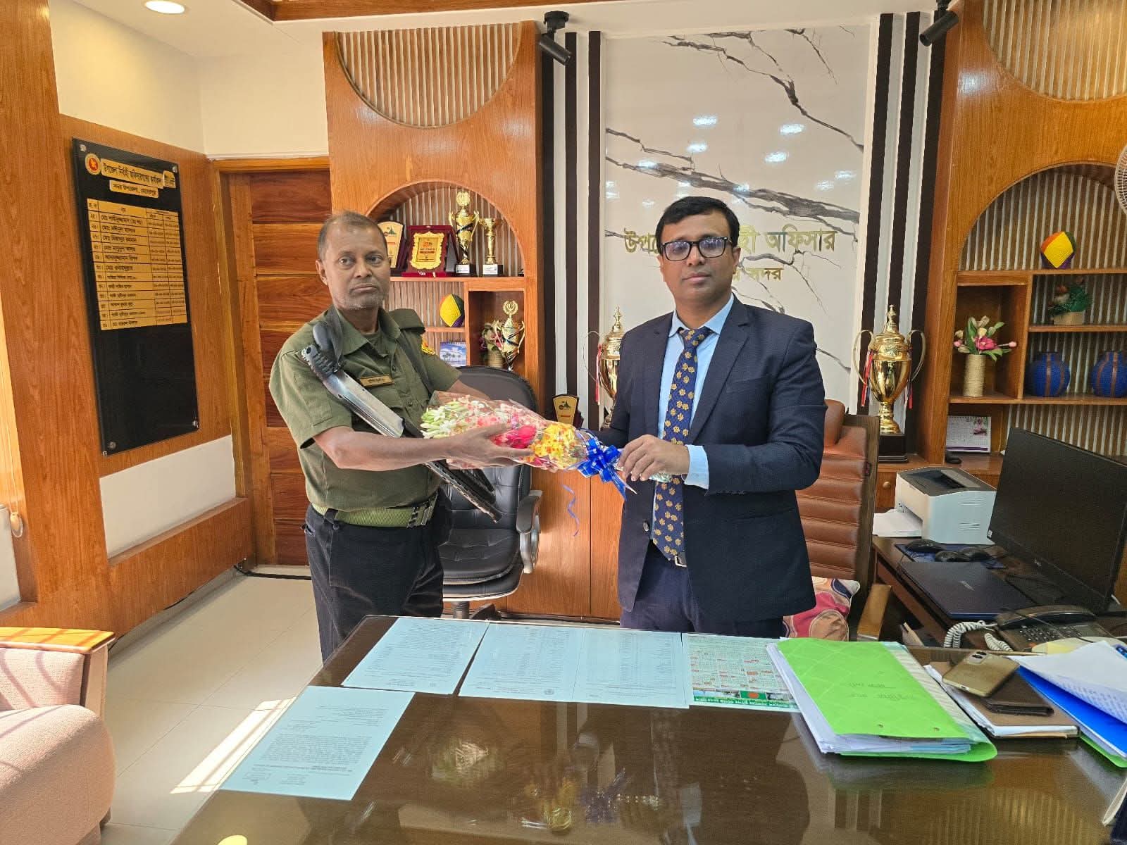 আনসার সদস্যের ছেলের বরিশাল মেডিকেলে চান্স পাওয়ায় ফুলেল শুভেচ্ছা