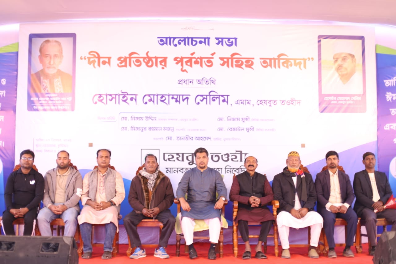 কুষ্টিয়ার ভেড়ামারায় হেযবুত তওহীদের উদ্যোগে ‘দ্বীন প্রতিষ্ঠার পূর্বশর্ত- সহিহ আকিদা’ শীর্ষক এক আলোচনা সভা অনুষ্ঠিত হয়েছে। শনিবার (২০ ডিসেম্বর) বিকেল ৩টায় উপজেলার ভেড়ামারা এলাকায় আয়োজিত এই সভায় প্রধান অতিথি হিসেবে বক্তব্য রাখেন হেযবুত তওহীদের শীর্ষ নেতা এমাম হোসাইন মোহাম্মদ সেলিম।