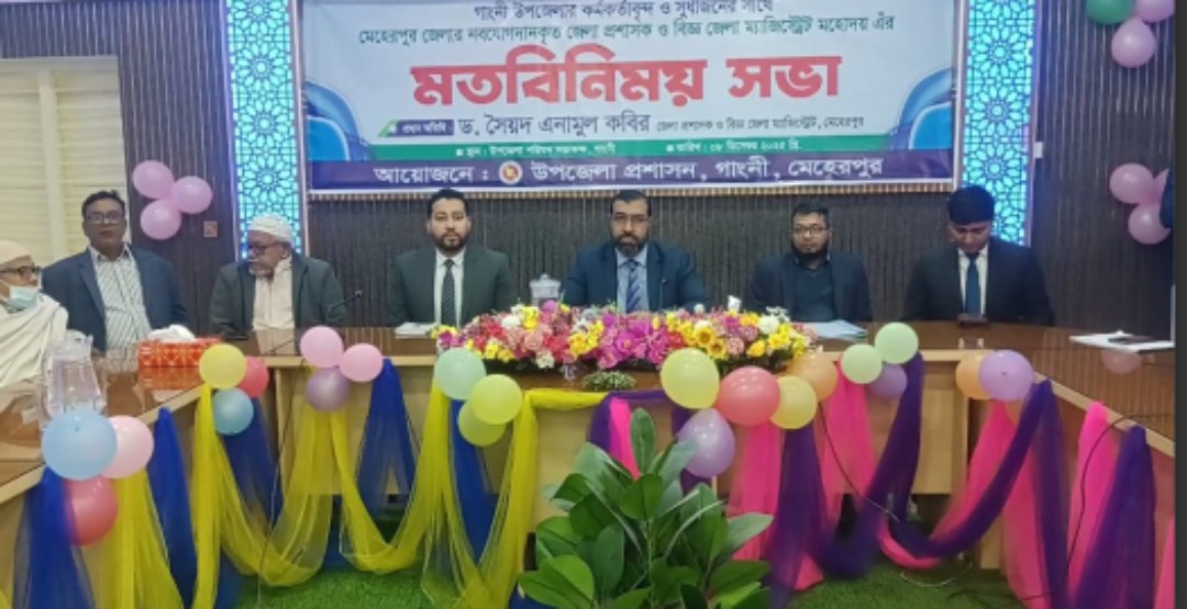 মেহেরপুর গাংনীতে সরকারী কর্মকর্তা ও সুধীজনদের সাথে নবাগত মেহেরপুর জেলা প্রশাসক (ডিসি) ড. সৈয়দ এনামুল কবিরের মতবিনিময় সভা অনুষ্ঠিত হয়েছে। সোমবার সকালে গাংনী উপজেলা পরিষদ সম্মেলন কক্ষে এ সভা অনুষ্ঠিত হয়।