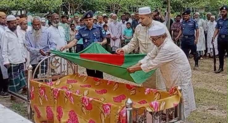 শনিবার দুপুর আড়াইটার দিকে তাকে গাংনী থানা পুলিশের একটিদল গার্ডঅপ অনার করে। পরে রাস্ট্রের পক্ষ থেকে তাকে জাতীয় পতাকা দিয়ে আচ্ছ্বাদিত করেন গাংনী উপজেলা নির্বাহী অফিসার আনােয়ার হােসেন।