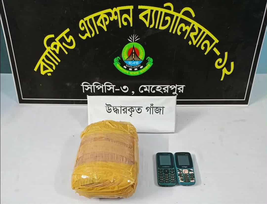 গাংনী পৌরসভায় মাদকবিরোধী অভিযান, ১ কেজি গাঁজাসহ গ্রেপ্তার দুই