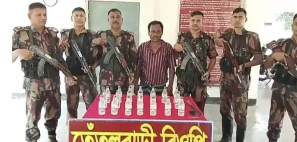 সোমবার সকাল সােয়া ১০টার দিকে কুষ্টিয়া ব্যাটালিয়ন (৪৭ বিজিবি) এর অধীনস্থ তেঁতুলবাড়ীয়া বিওপির দায়িত্বপূর্ণ সীমান্ত এলাকায় চোরাচালানবিরোধী অভিযান চালিয়ে তাকে আটক করা হয়। এ সময় তার কাছ থেকে ২০ বোতল ভারতীয় মদ ও ১টি হাসুয়া উদ্ধার করা হয়।