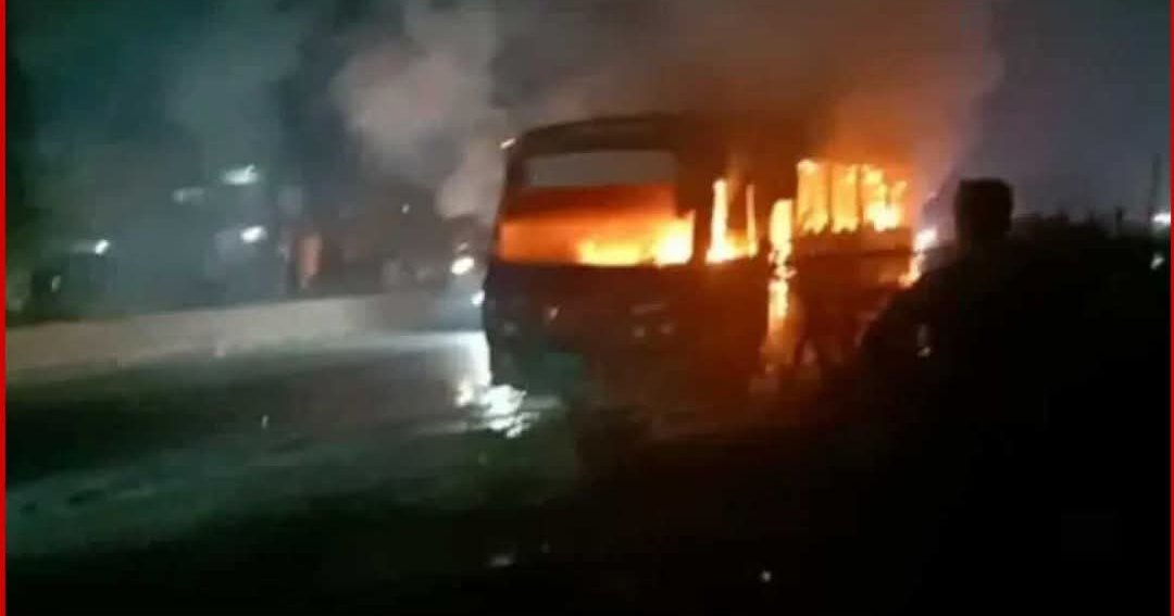 স্থানীয় সূত্রে জানা গেছে, জ্যেতি পাম্পের পাশে মেরামতের জন্য একটি বাস দাঁড়িয়ে ছিল। এ সময় এক মিস্ত্রি বাসের নিচে শুয়ে কাজ করছিলেন। হঠাৎ একটি মোটরসাইকেলে দুই দুর্বৃত্ত এসে বাসের পাশে থামে এবং মুহূর্তের মধ্যে বাসে পেট্রোল ঢেলে আগুন ধরিয়ে দ্রুত পালিয়ে যায়।