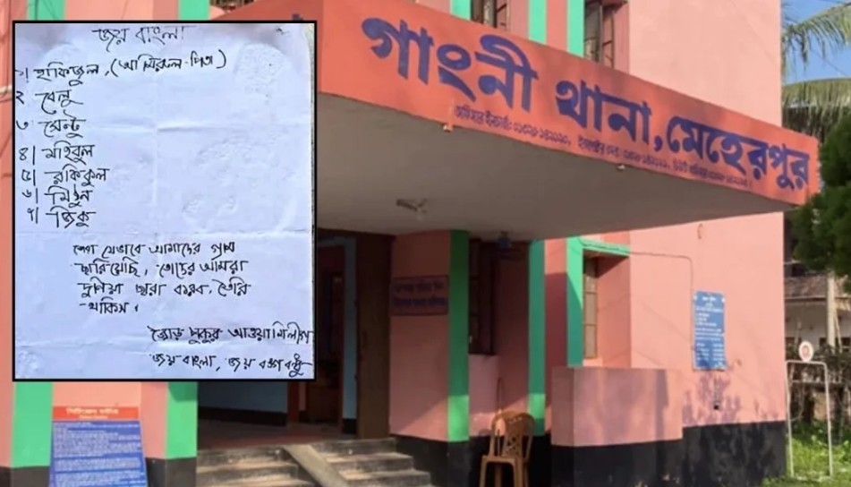 শুক্রবার (১৬ জানুয়ারি) সকালে গাংনী উপজেলার জোড়পুকুরিয়া গ্রামের একটি দোকানের দেয়ালে লাগানো চিরকুটটি প্রথমে নজরে আসে স্থানীয়দের।