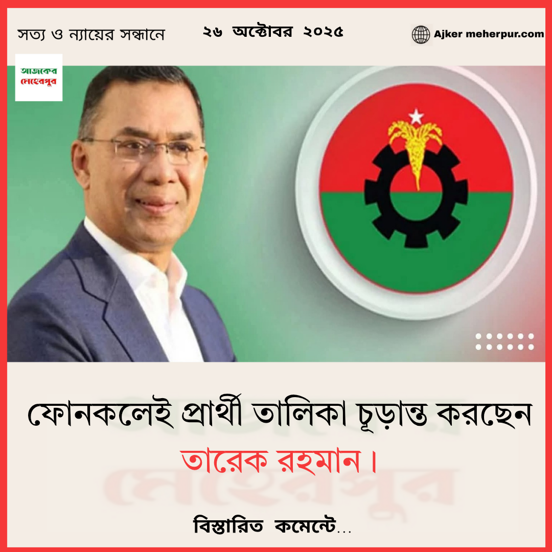 আসন্ন ত্রয়োদশ জাতীয় সংসদ নির্বাচনকে সামনে রেখে বাংলাদেশ জাতীয়তাবাদী দল (বিএনপি) এখন এক গুরুত্বপূর্ণ সময় অতিক্রম করছে। আনুষ্ঠানিকভাবে নির্বাচনী তৎপরতা শুরু না হলেও দলের অভ্যন্তরে চলছে নিবিড় প্রস্তুতি, যার কেন্দ্রে রয়েছেন দলটির ভারপ্রাপ্ত চেয়ারম্যান তারেক রহমান। লন্ডন থেকে তিনি সরাসরি তত্ত্বাবধান করছেন সম্ভাব্য প্রার্থীদের মনোনয়ন প্রক্রিয়া।তারেক রহমানের একটি ফোনকলই নির্ধারণ করছে কারা হচ্ছেন বিএনপির মনোনীত প্রার্থী। এই ফোনকলের মাধ্যমেই স্পষ্ট হচ্ছে কে পাচ্ছেন ‘গ্রিন সিগন্যাল’ আর কে বাদ পড়ছেন নির্বাচনী দৌড় থেকে। দলের অভ্যন্তরীণ সূত্রে জানা গেছে, বিএনপি বর্তমানে মনোনয়ন যাচাই-বাছাইয়ের চূড়ান্ত পর্যায়ে রয়েছে।দলের ভারপ্রাপ্ত চেয়ারম্যান প্রতিটি আসনে প্রার্থীর জনপ্রিয়তা, গ্রহণযোগ্যতা এবং সাংগঠনিক সক্ষমতা খতিয়ে দেখছেন। শুধু পর্যবেক্ষণ নয়, তিনি ব্যক্তিগতভাবে প্রতিটি আসনের সম্ভাব্য প্রার্থীদের সঙ্গে একাধিকবার কথা বলেছেন। এখন তিনি চূড়ান্ত প্রার্থীদের ফোন করে নির্বাচনী প্রচারণায় পূর্ণোদ্যমে নামার নির্দেশনা দিচ্ছেন, যা তাদের মনোনয়ন নিশ্চিত করছে।বিএনপির এক জ্যেষ্ঠ নেতা নাম প্রকাশ না করার শর্তে বলেন, ‘আগের মতো এবার শুধু সিনিয়রিটি বা কেন্দ্রীয় সম্পর্ক নয়, মাঠের বাস্তবতা ও জনগণের পছন্দই সর্বাধিক গুরুত্ব পাচ্ছে। তারেক রহমানের কাছে এখন প্রতিটি আসনের বিস্তারিত রিপোর্ট রয়েছে। যাদের সম্পর্কে ইতিবাচক প্রতিক্রিয়া এসেছে এবং যারা জনগণের কাছে গ্রহণযোগ্য বলে প্রমাণিত হয়েছেন, তারাই এই কাঙ্ক্ষিত ফোনকল পাচ্ছেন।’