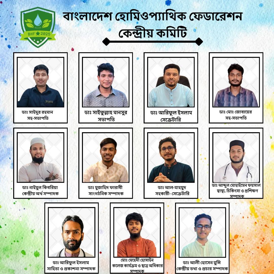 বাংলাদেশ হোমিওপ্যাথিক ফেডারেশন কেন্দ্রীয় কমিটি ২০২৬-২৮ সেশন ।