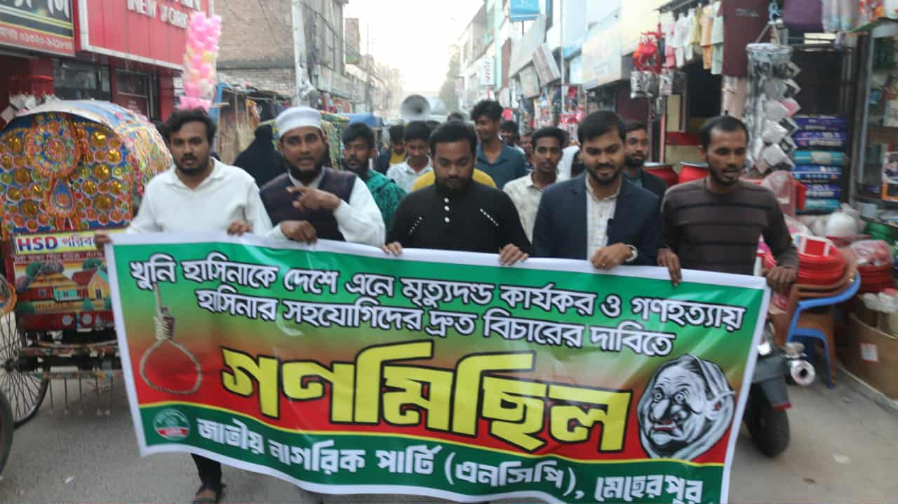 বিচারের দাবিতে মেহেরপুরে এনসিপির গণমিছিল ও সমাবেশ