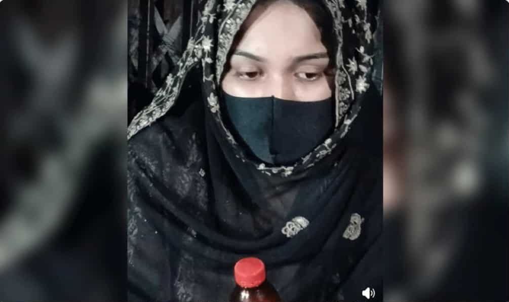 স্থানীয়রা জানান, বিকেল থেকে মেয়েটি বিষের বোতল নিয়ে অনশনে বসেছে।