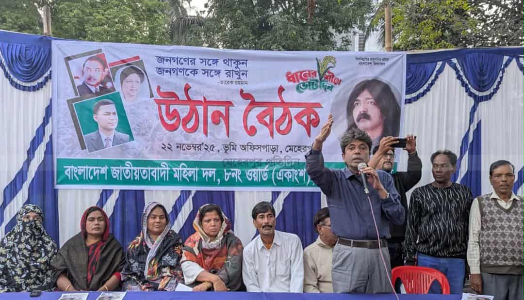 মেহেরপুরে জাতীয়তাবাদী মহিলা দল জেলা শাখার উদ্যোগে ৮ নম্বর ওয়ার্ডের ভূমি অফিসপাড়ায় এক উঠান বৈঠকের আয়োজন করা হয়েছে।