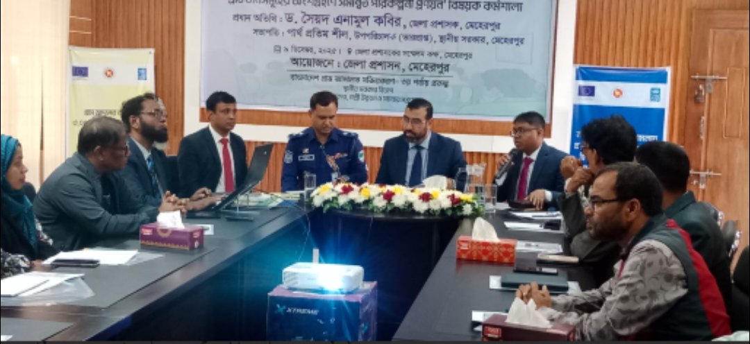 মেহেরপুর জেলা প্রশাসনের উদ্যোগে গ্রাম আদালত সক্রিয়করণ তৃতীয় পর্যায় প্রকল্পের আওতায় গ্রাম আদালত সম্পর্কে ব্যাপক সচেতনতা বৃদ্ধির লক্ষ্যে সরকারি ও বেসরকারি প্রতিষ্ঠানসমূহের অংশগ্রহণে সমন্বিত পরিকল্পনা প্রণয়ন কর্মশালা অনুষ্ঠিত হয়েছে।