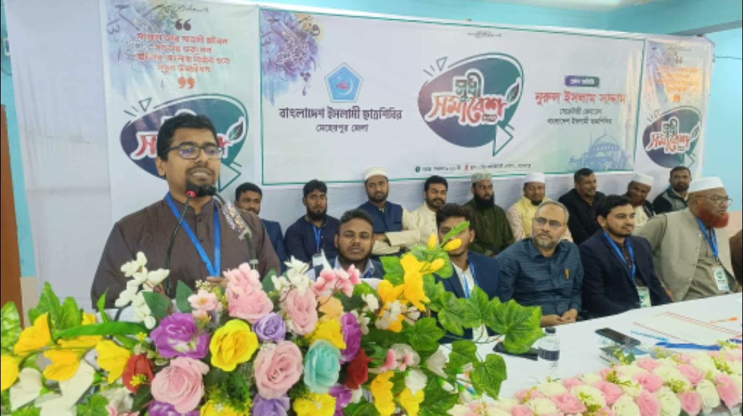 তিনি আরও দাবি করেন, বিএনপির অভ্যন্তরীণ দ্বন্দ্বে দলটির বহু নেতা-কর্মী ক্ষতিগ্রস্ত হয়েছেন এবং শিবিরের নাম ব্যবহার করে বিভিন্ন তালিকা প্রকাশের মাধ্যমে বিভ্রান্তি সৃষ্টি করা হয়েছে।মেহেরপুর জেলা ইসলামী ছাত্রশিবিরের সভাপতি আব্দুস সালামের সভাপতিত্বে অনুষ্ঠানে বিশেষ অতিথি হিসেবে বক্তব্য রাখেন বাংলাদেশ ইসলামী ছাত্রশিবিরের গবেষণা সম্পাদক ফখরুল ইসলাম, মেহেরপুর জেলা জামায়াতে ইসলামীর আমির মাওলানা তাজউদ্দিন খান, সাধারণ সম্পাদক ইকবাল হুসাইন, মেহেরপুর সদর উপজেলা জামায়াতের আমির সোহেল রানা, আদর্শ শিক্ষক ফেডারেশনের সভাপতি আল আমিন বকুল এবং জেলা শিবিরের সেক্রেটারি মো. সাইদুর রহমান।