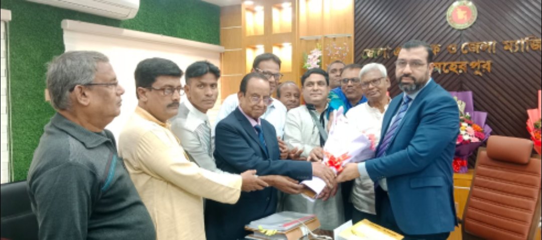 মেহেরপুরে জেলা প্রশাসকের সঙ্গে পূজা উদযাপন পরিষদের সৌজন্য সাক্ষাৎ