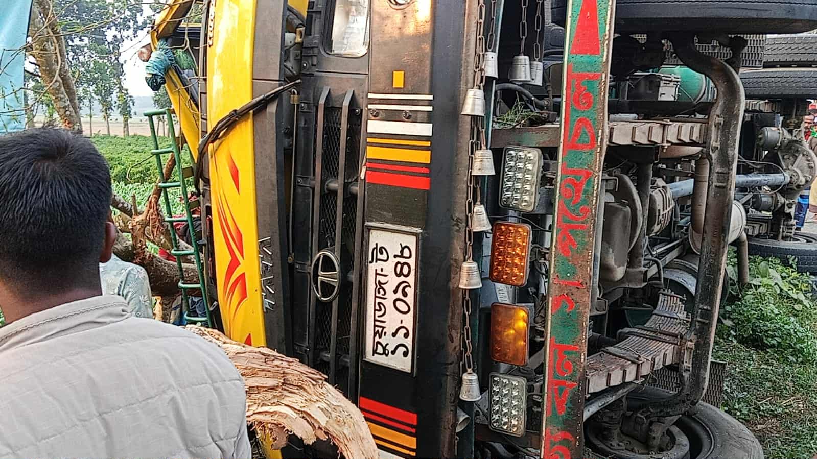 মেহেরপুরে সবজি বোঝাই ট্রাক উল্টে ট্রাক চালক আহত