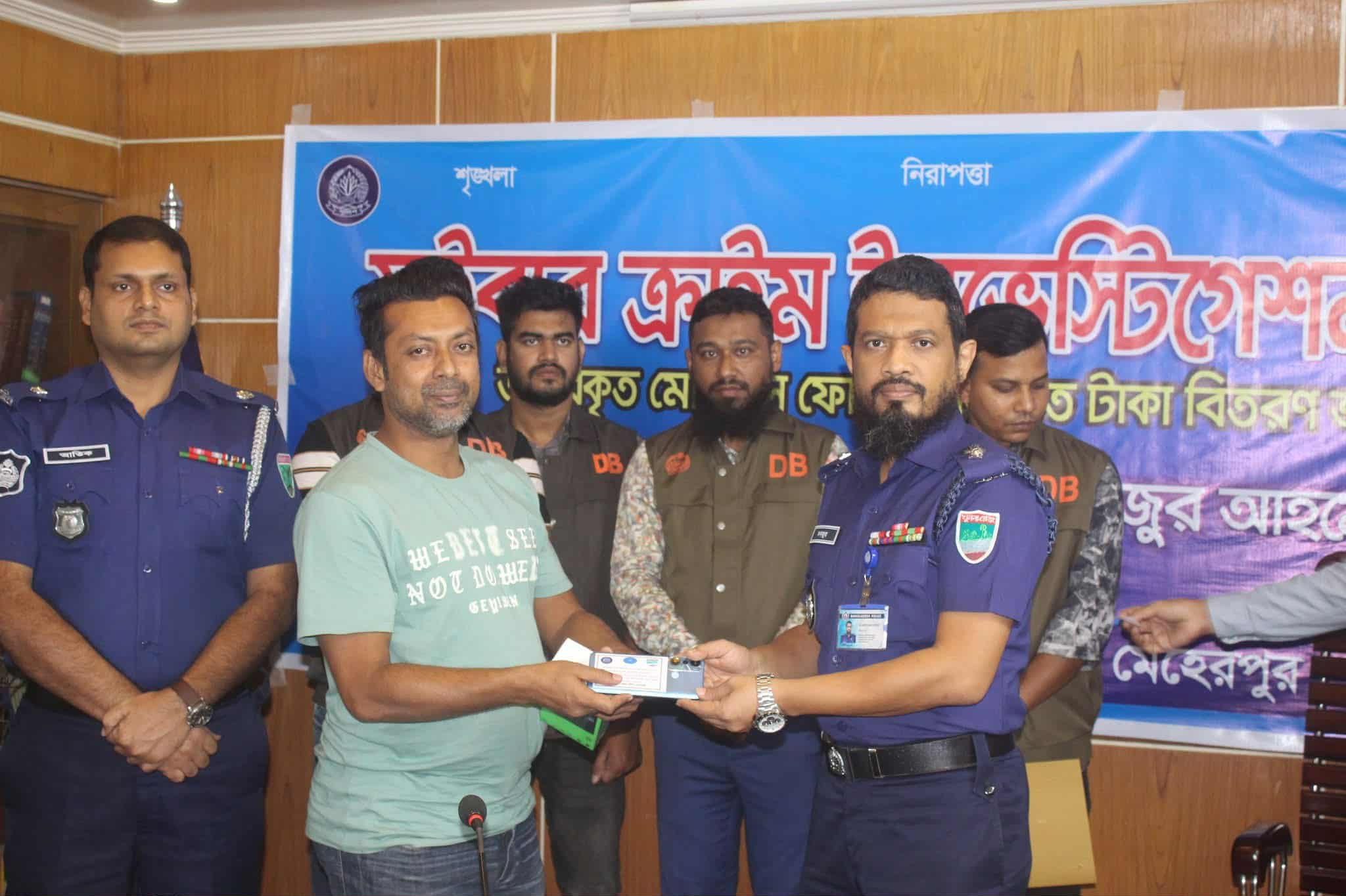 মেহেরপুর জেলার পুলিশ সুপার জনাব মোহাম্মদ মনজুর আহমেদ সিদ্দিকী মহোদয়ের নির্দেশে এবং অতিরিক্ত পুলিশ সুপার (প্রশাসন ও অর্থ) জনাব মোহাম্মদ আতিকুল হক এর সার্বিক দিক নির্দেশনায় সাইবার ক্রাইম ইনভেস্টিগেশন সেল, মেহেরপুরের চৌকস টিম মেহেরপুর জেলার বিভিন্ন থানার জিডি এবং অভিযোগের প্রেক্ষিতে তথ্য প্রযুক্তির সর্বোচ্চ ব্যবহার করে মোবাইল ব্যাংকিং এর মাধ্যমে হাতিয়ে নেওয়া ভিকটিমের সর্বমোট ১,১৮,৪০০/= (এক লক্ষ আঠারো হাজার চারশত) টাকা এবং বিভিন্ন ব্র্যান্ডের ৪৯ (ঊনপঞ্চাশ) টি হারানো মোবাইল ফোন উদ্ধার পূর্বক প্রকৃত মালিকদের নিকট হস্তান্তর করেন।