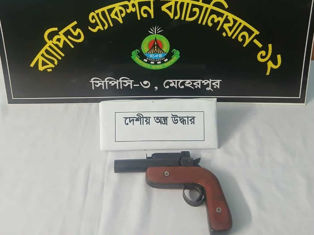 মেহেরপুরের গাংনী উপজেলার চোখতোলা এলাকায় যৌথ বাহিনীর অভিযানে একটি ওয়ান শুটার গান উদ্ধার করা হয়েছে। আজ শনিবার(০১ নভেম্বর) রাত ১১টার দিকে বাংলাদেশ সেনাবাহিনীর গাংনী ক্যাম্প এবং র্যাব-১২ সিপিসি-৩ এর সদস্যরা এ অভিযান পরিচালনা করে।