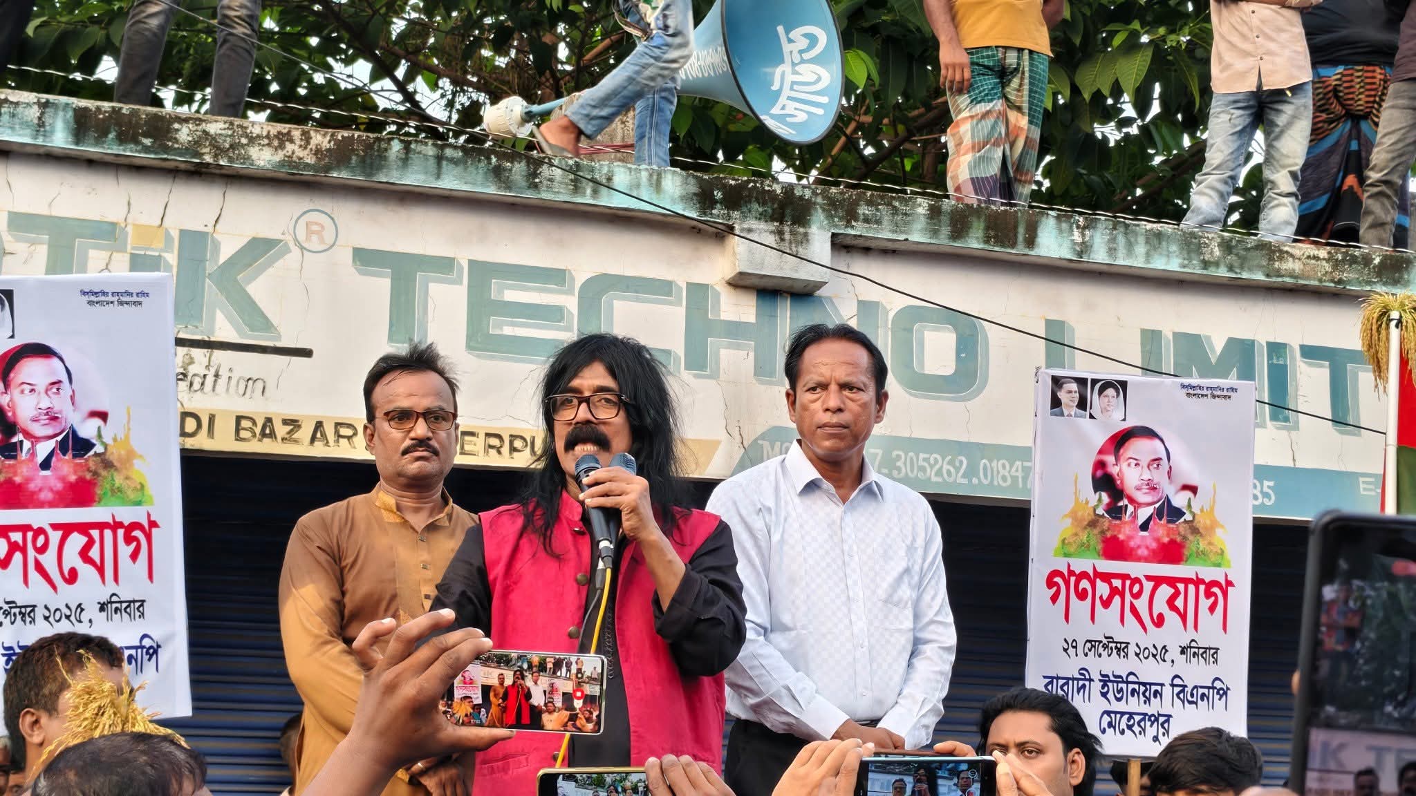 মেহেরপুর সদর উপজেলার বারাদি বাজারে বিএনপি’র সাবেক এমপি মাসুদ অরুনের গণসংযোগ।