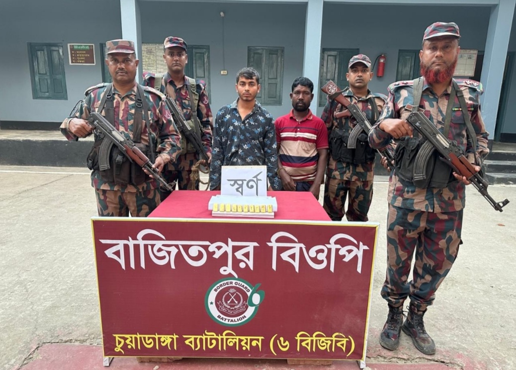 মেহেরপুর সদর উপজেলার বাজিতপুর সীমান্ত এলাকা থেকে ১ কেজি ১৬৬ গ্রাম ওজনের ১০টি স্বর্ণের বারসহ মোঃ আব্বাস আলী ও মিজান রহমান শেখ নামের দুই স্বর্ণ চোরাকারবারীকে আটক করেছে বিজিবি। রবিবার বিকেলের দিকে চুয়াডাঙ্গা ৬ ব্যাটালিয়নের বাজিতপুর বিওপির সদস্যরা বিশেষ অভিযানে তাদের আটক করে।
