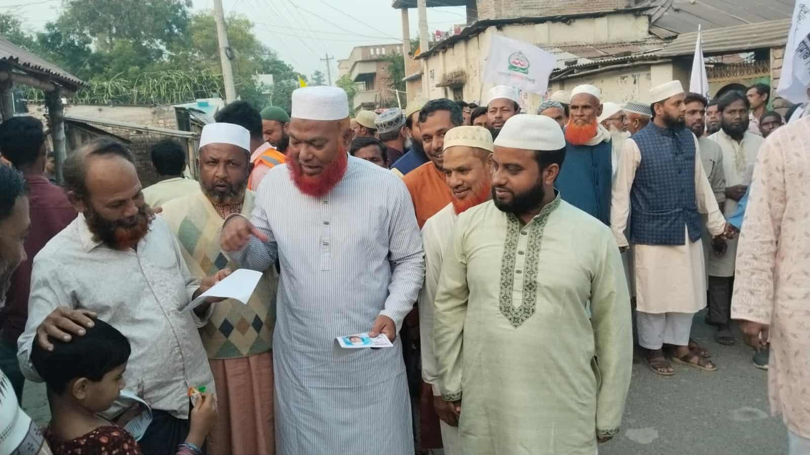 মেহেরপুর-১ আসনের জামায়াত এমপি প্রার্থী মাওলানা তাজউদ্দিন খানের আমদহ গ্রামে গণসংযোগ