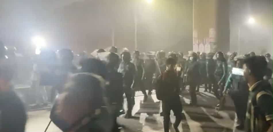 ওসি খালিদ মনসুর বলেন, আন্দোলনকারীরা পুলিশের দিকে ইট পাটকেল ছুড়েছে। ইট পাটকেলের আঘাতে আমিও আহত হয়েছি। তারা এখনো চারুকলার সামনের সড়কে অবস্থান করছেন।
