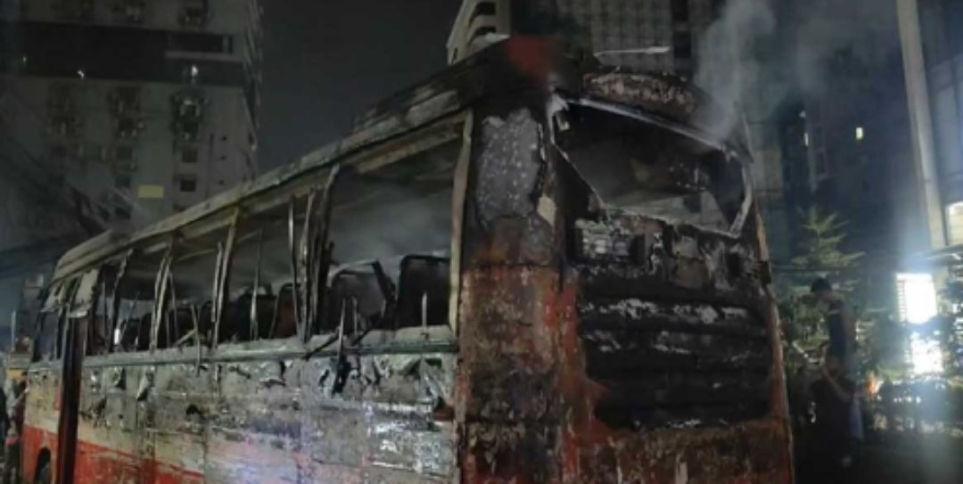 রাজধানীর বাড্ডা লিংক রোডে চলন্ত বাসে আগুন