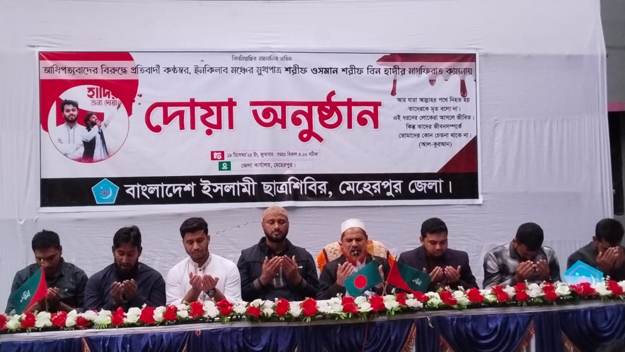 ইনকিলাব মঞ্চের মুখপাত্র শরিফ ওসমান হাদির মাগফিরাত কামনায় দোয়া ও মিলাদ মাহফিলের আয়োজন করেছে বাংলাদেশ ইসলামী ছাত্রশিবির মেহেরপুর জেলা শাখা।
